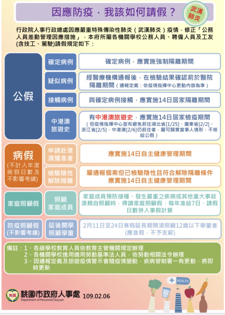 主旨:配合嚴重特殊傳染性肺炎中央流行疫情指揮中心(以下簡稱疫情指揮中心)公布全國高中職(含)以下學校延後開學 2 週,有關各級機關(構)同仁於延後開學期間,有照顧子女需求之請假因應措施一案,請查照轉知並配合辦理。