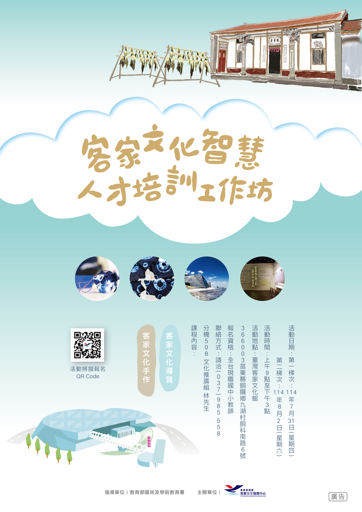 客家委員會客家文化發展中心於114年7月31日及8月2日辦理「客家文化智慧教育人才培訓工作坊」