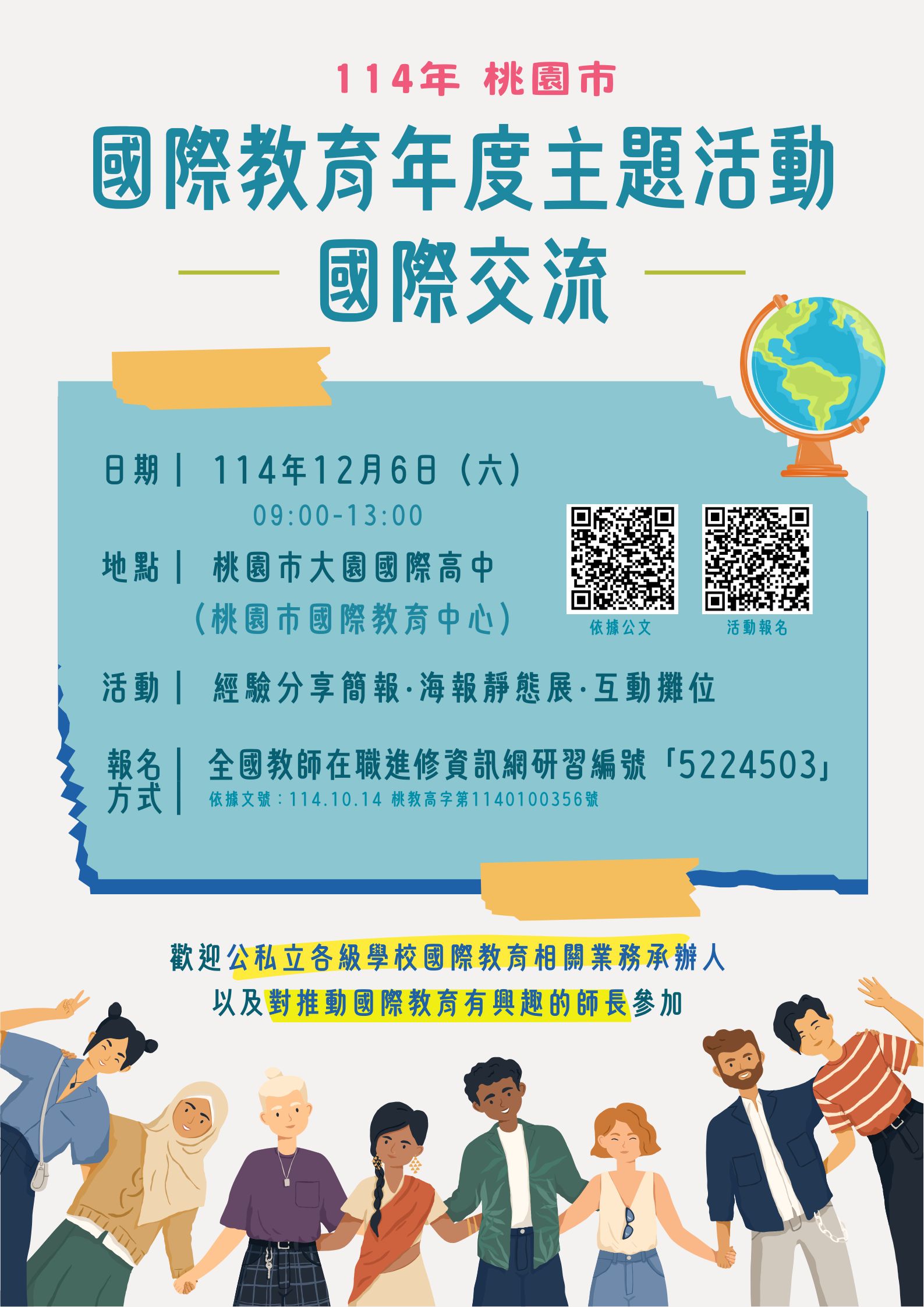 | 2、 | 彙整轄屬各級學校推動國際交流之成果,辦理易拉展海報展及互動攤位,展現多元交流面貌。 |
